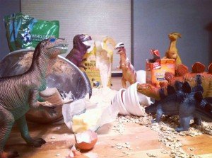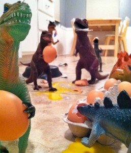 Nos ha parecido una idea estupenda y creemos que han sido muy ingeniosos recreando los escenarios de las fechorías de nuestros amigos los dinosaurios.
