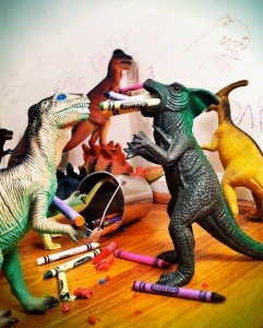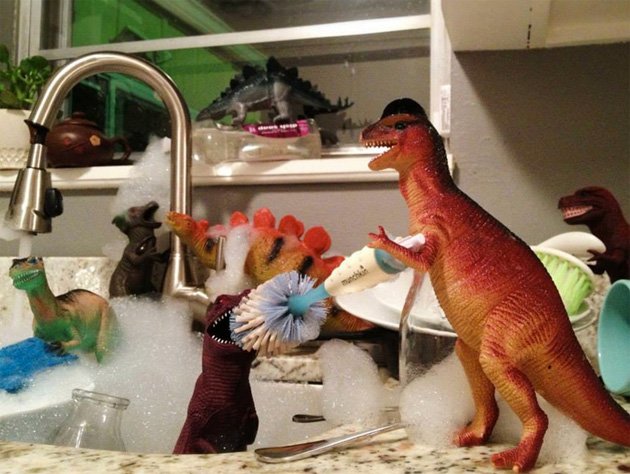 Nos parece genial la iniciativa de estos padres, e imaginamos la ilusión de sus niños cada mañana al despertarse para ver la foto que ilustraba las hazañas de sus dinosaurios la noche anterior. La verdad es que las fotos están muy bien pensadas y los escenarios están muy elaborados.